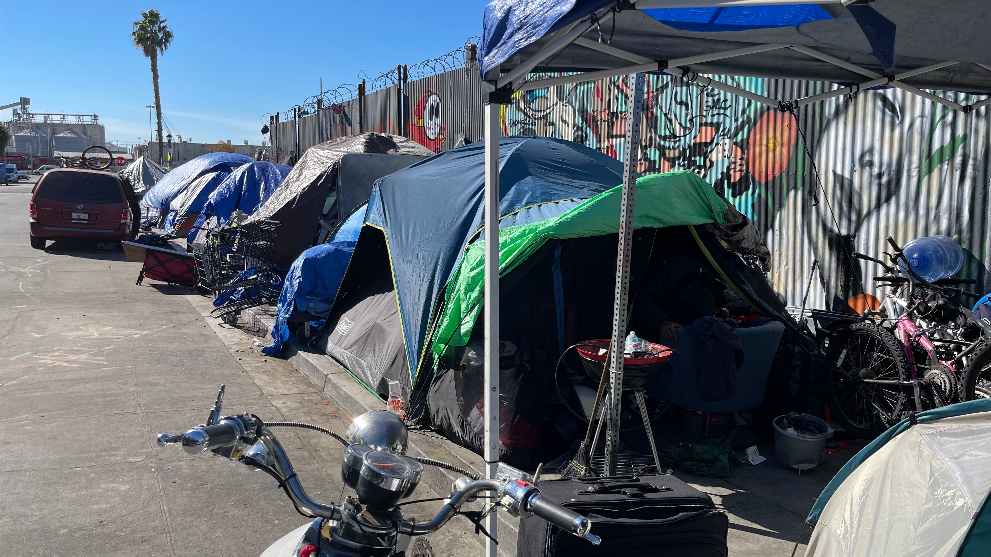 File footage of homelessness in Los Angeles and Chicago is run throughout the interview, giving the visual impression that this is similar to what Coronado was facing before the mayor solved the problem.