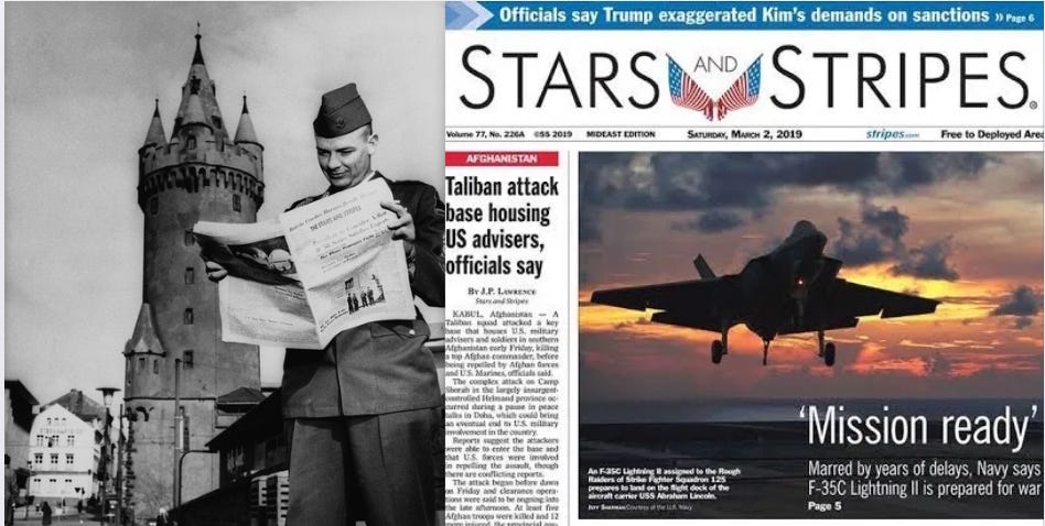 Although funded by the Department of Defense, the Stars and Stripes has always been mandated by Congress to be governed by First Amendment principles so that members of our military have access to the unvarnished truth and will not be subjected to propaganda from a particular administration.